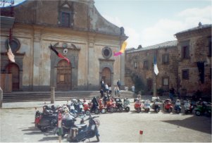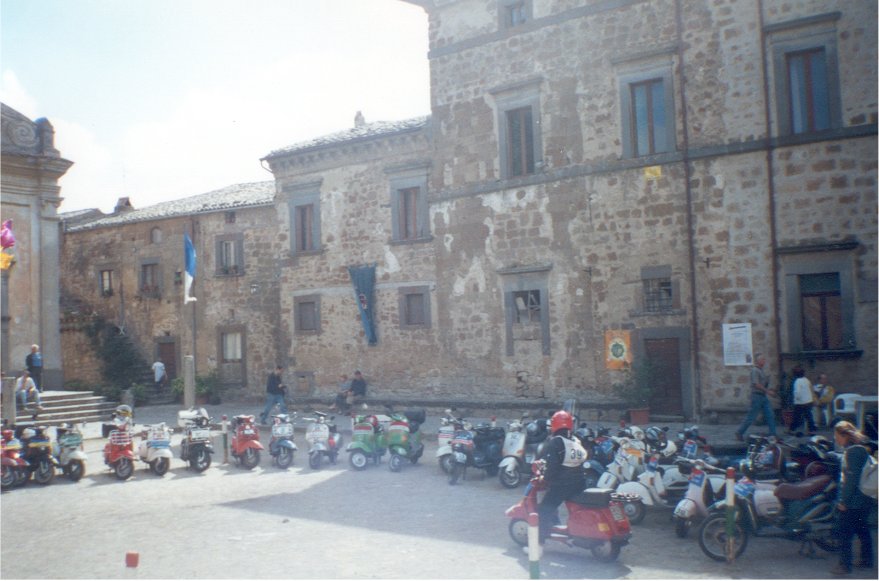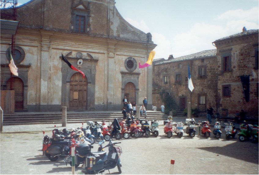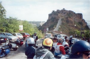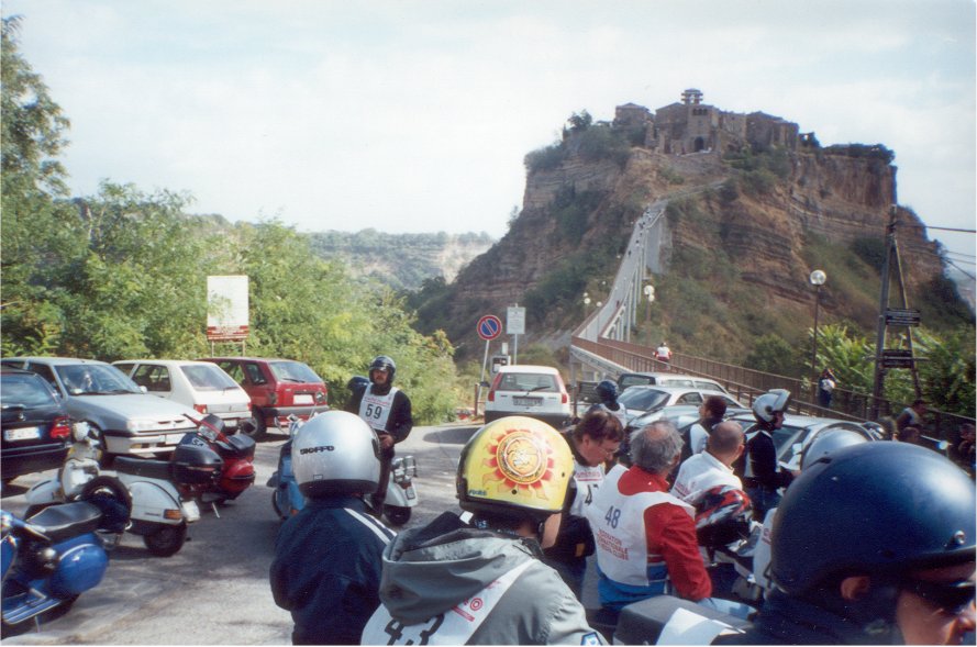 sopra : Civita di Bagnoreggio l'inespugnabile ! Il Sindaco ha dato un permesso particolare per salire in Vespa sul ponte pedonale per il controllo a timbro, gradini inclusi! un tuffo al cuore !! |