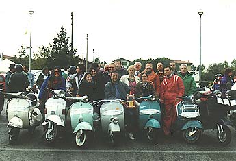 Ed ecco invece una bella foto di gruppo del nucleo storico del nostro Vespa Club al raduno rievocativo per i 50 anni della Vespa svoltosi a Pontedera in Settembre ... |