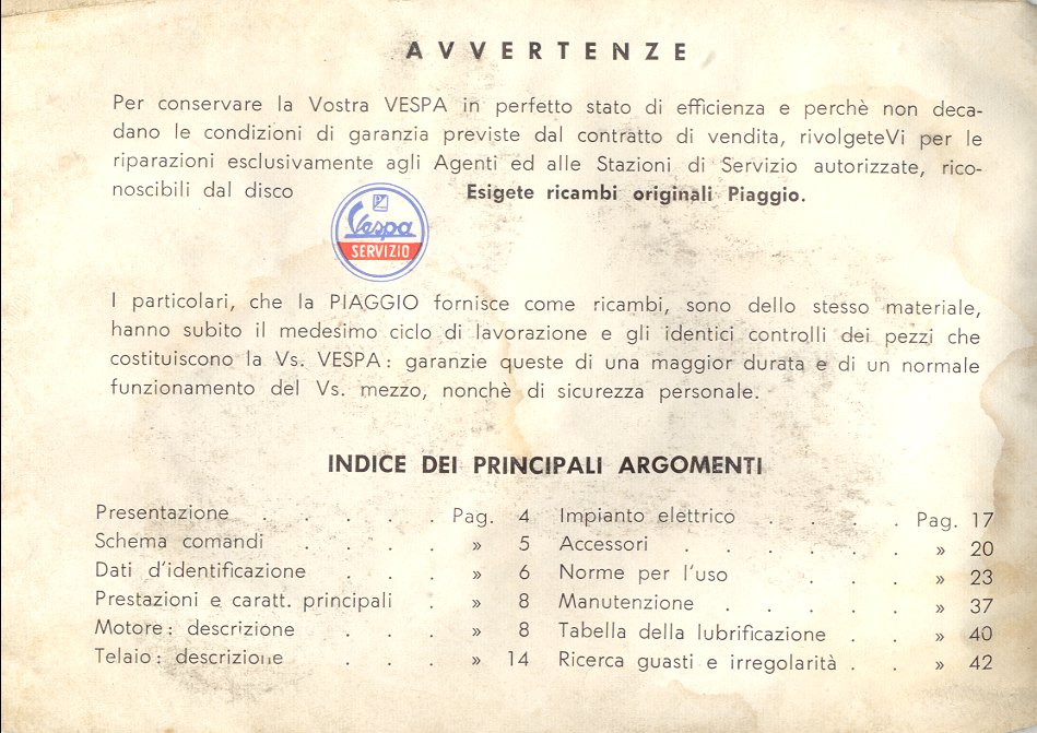 Abbiamo a Vostra disposizione alcuni libretti di uso e manutenzione della mitica Vespa ...